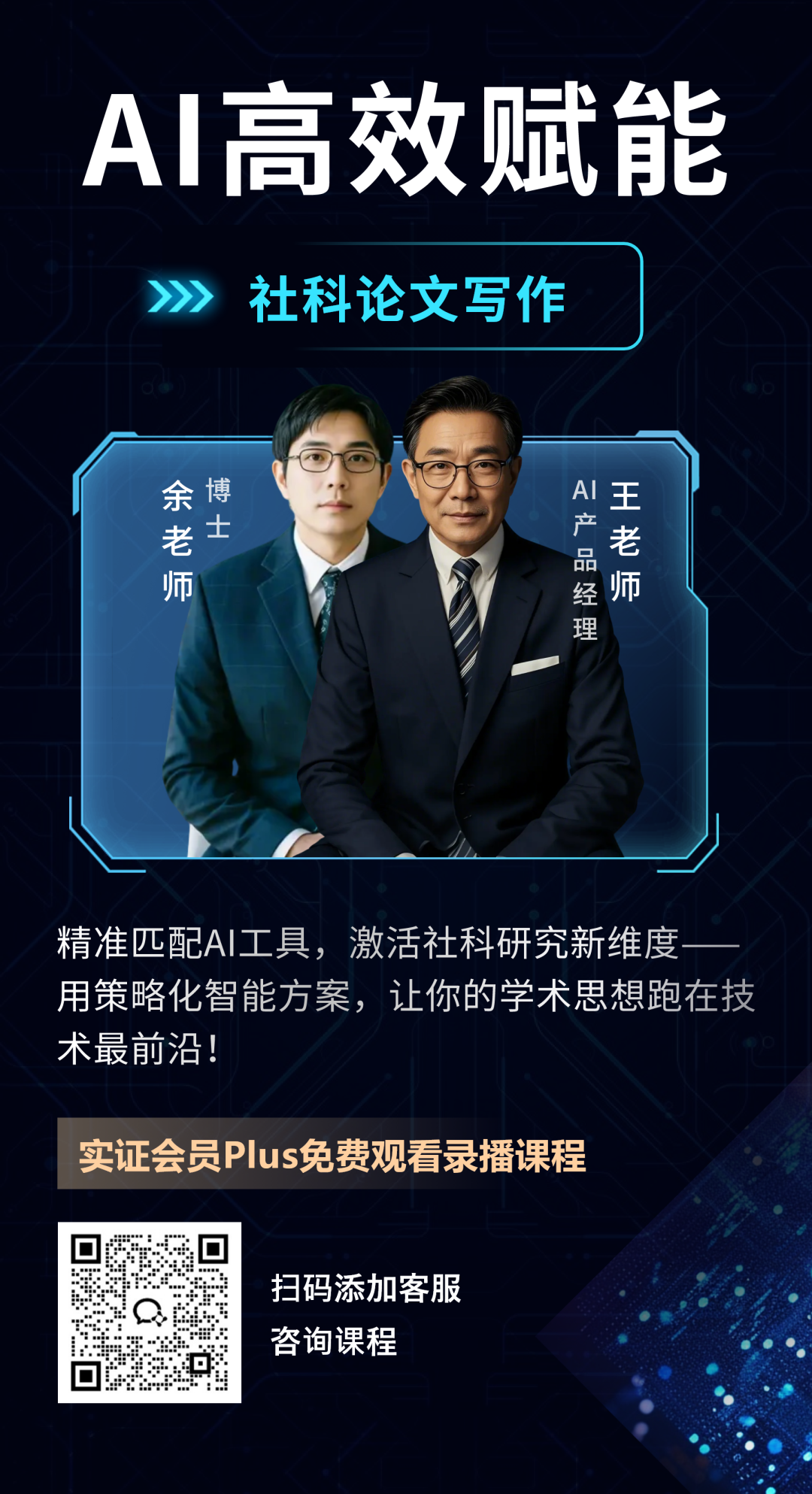 余老师、王老师,博士在读+AI产品经理双名师阵容!精准匹配AI工具,激活社科研究新维度。