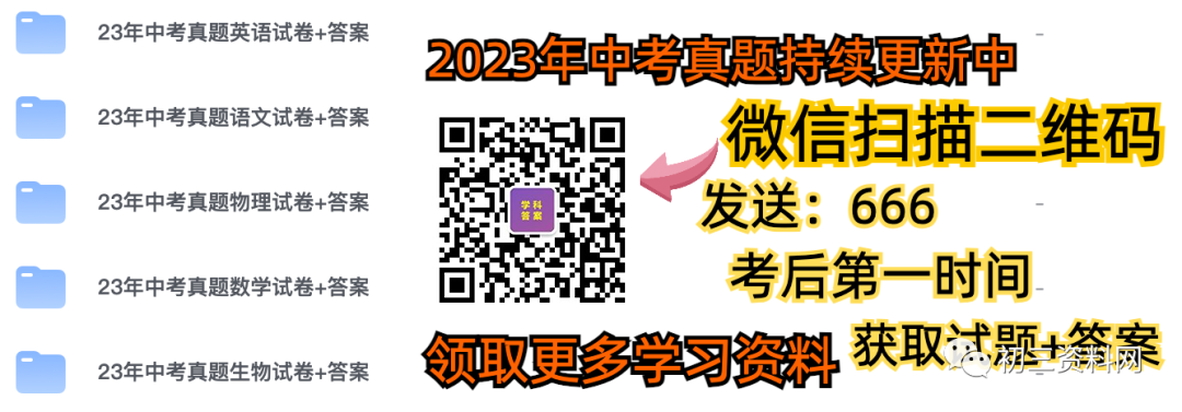 请大家点击下方👇👇公众号卡片,回复关键字:666 就能下载全套中考真题答案!