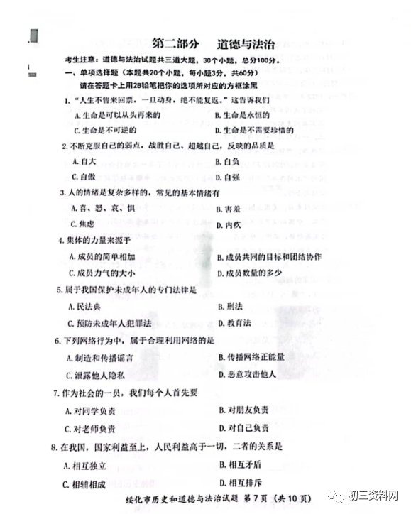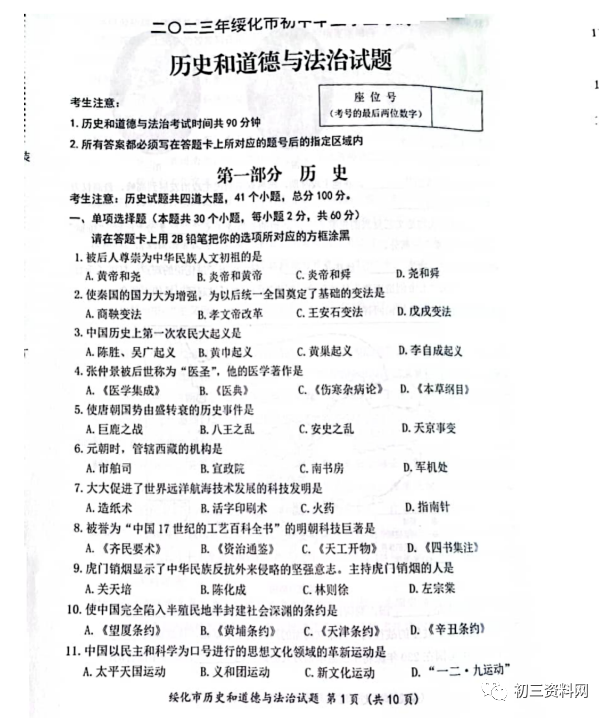 2023年中考政治与历史真题及详细答案下载获取方式: