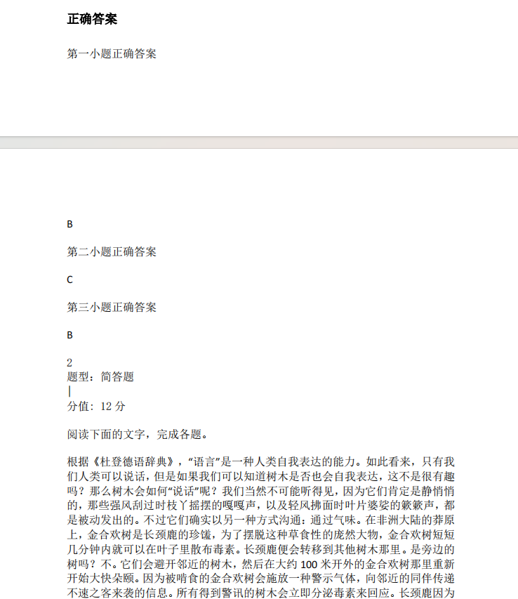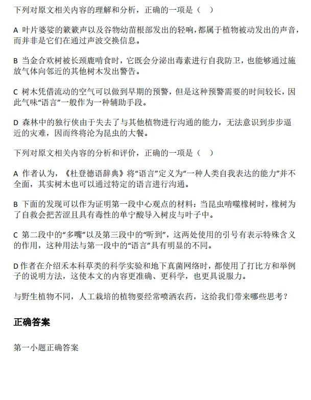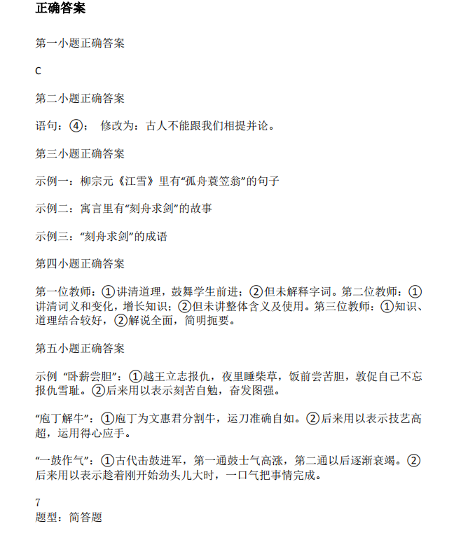 语文试题+答案,部分如下