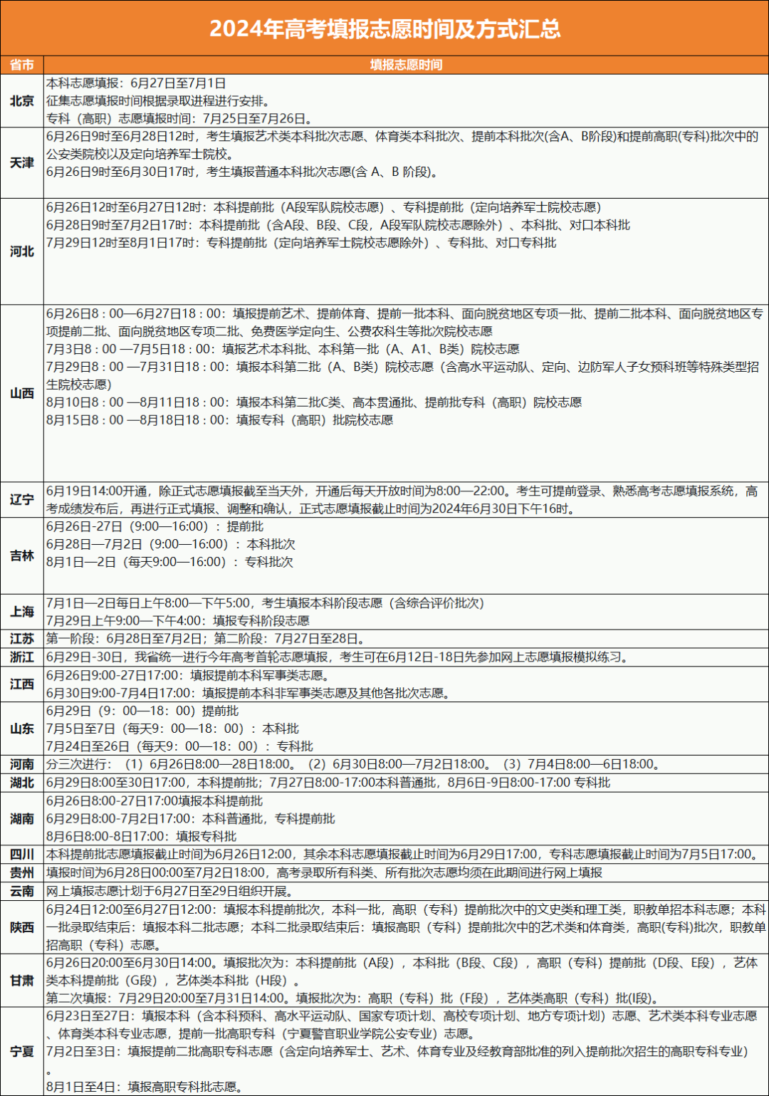 高考一结束马上就要进行志愿填报了,大家一定要注意各批次填报时间,这里何老师汇总了各省市各批次志愿填报时间,一定要认真查看额
