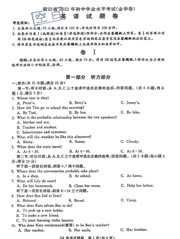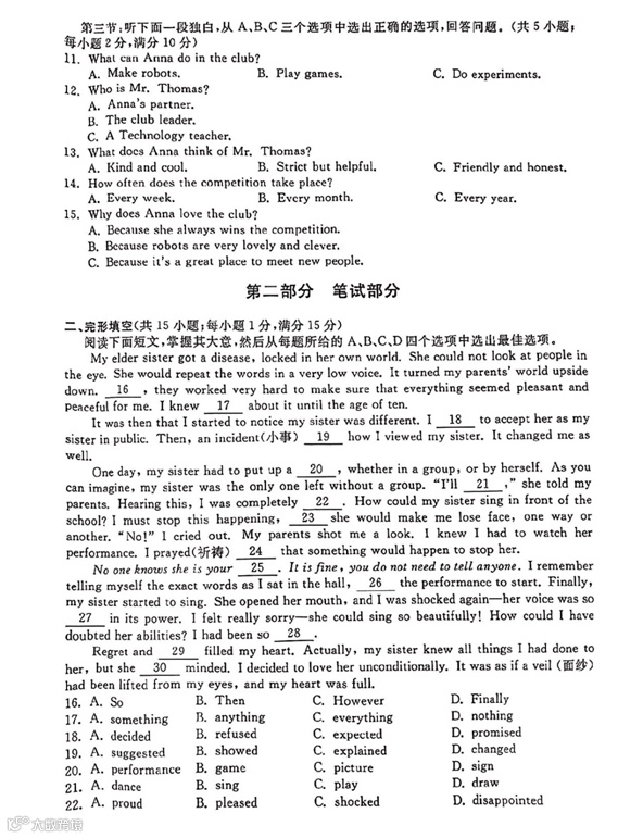 请大家点击下方👇👇公众号卡片,回复关键字:666 就能下载全套中考真题答案!