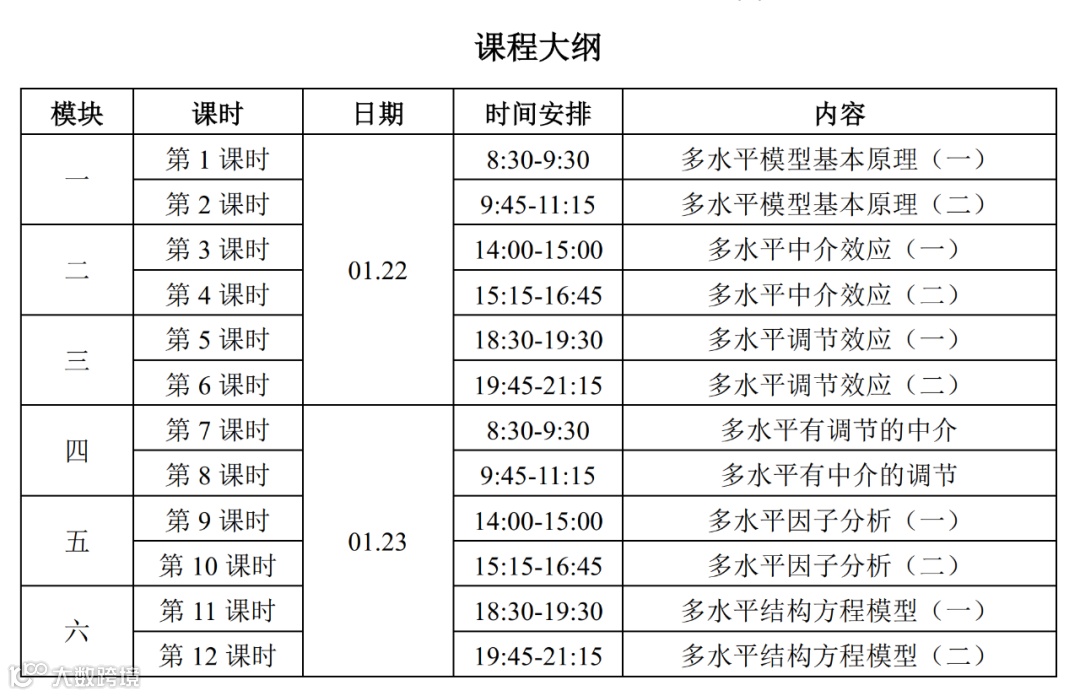 课程对象:管理学、心理学、教育学、社会学、政治学、传播学、护理学、公共卫生等学科的硕博士或教学科研人员,建议报此班的学员具备一定的统计学基础。
