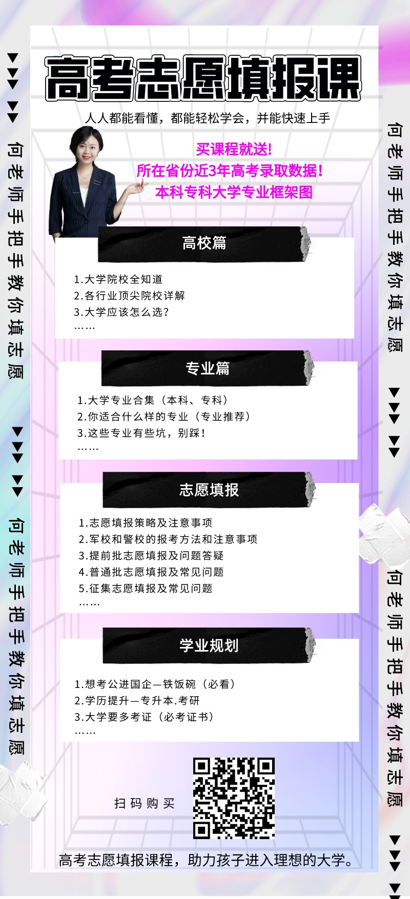 所以何老师打造了这样一个,人人都能看懂,都能轻松学会,并能快速上手的志愿填报课程本课程