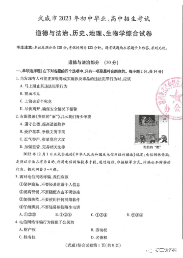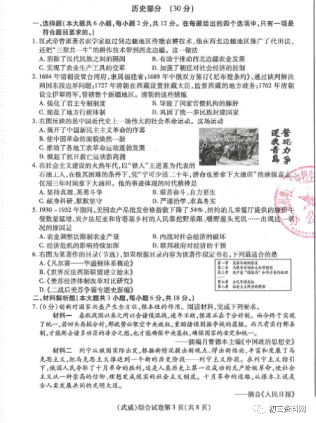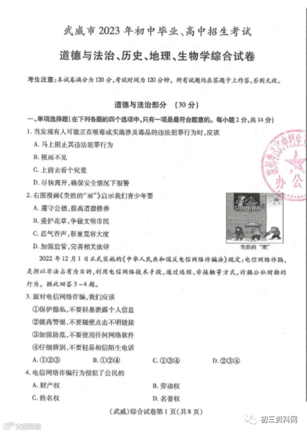 请大家点击下方👇👇公众号卡片,回复关键字:666 就能下载全套中考真题答案!