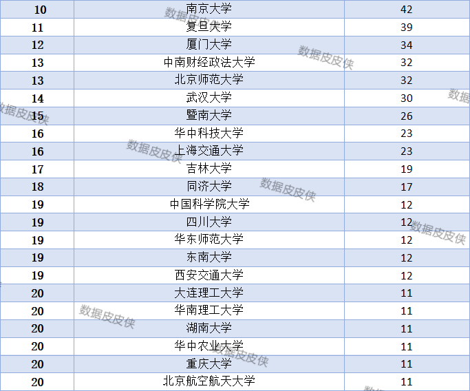 上海财经大学(57篇)、中南财经政法大学(32篇)、中央财经大学(43篇)跻身前20,聚焦财税金融、资源配置等议题,彰显学科特色。
