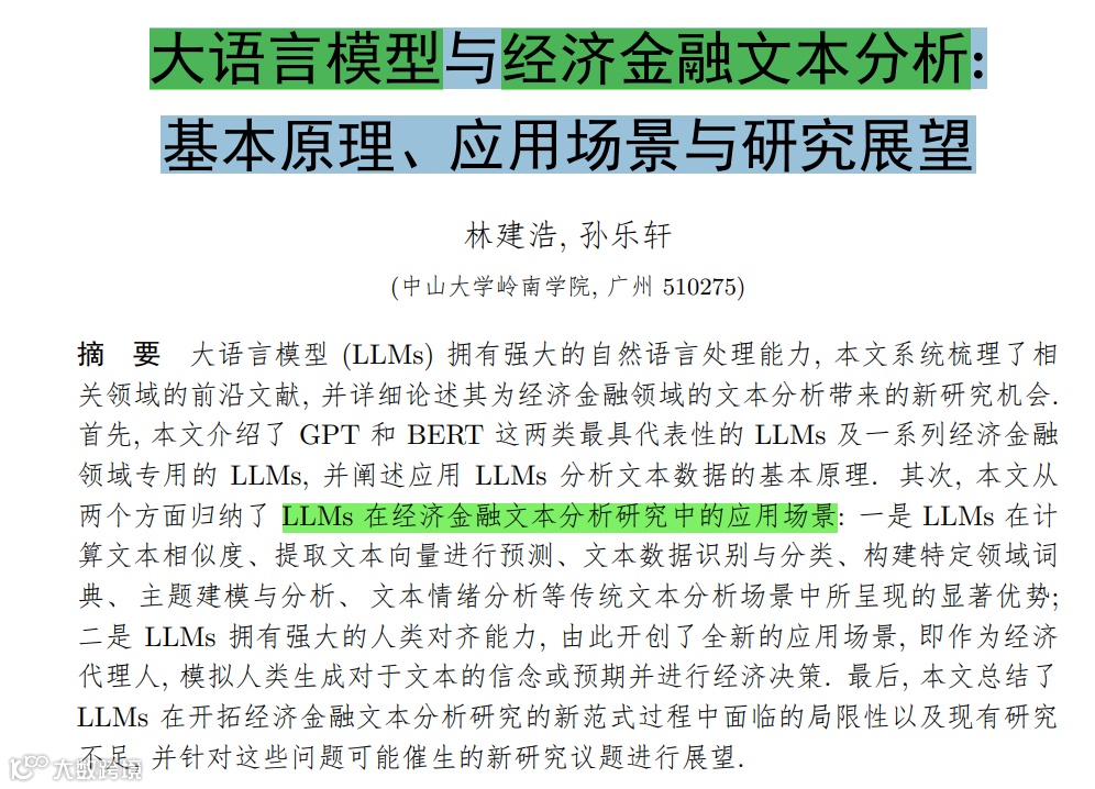 2025年第1期《计量经济学报》封面文章:中山大学林教授团队发表的《大语言模型与经济金融文本分析: 基本原理、应用场景与研究展望》给你展示了最新前沿综述,想深入了解的可以找来原文细读。