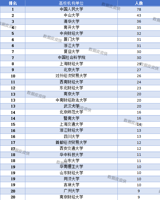 为此,我们数据皮皮侠团队根据该外审专家名单,结合知网数据与各大高校官网信息,收集并检索了980名专家的最新的所属院校机构单位,并统计整理出各高校机构麾下有多少学术工作者在担任《管理世界》期刊外审专家。再次需要声明的一点,我们在搜索过程中遇到部分重名或个别混乱信息,可能会存在缺漏导致未能准确对应,为此表示歉意。
