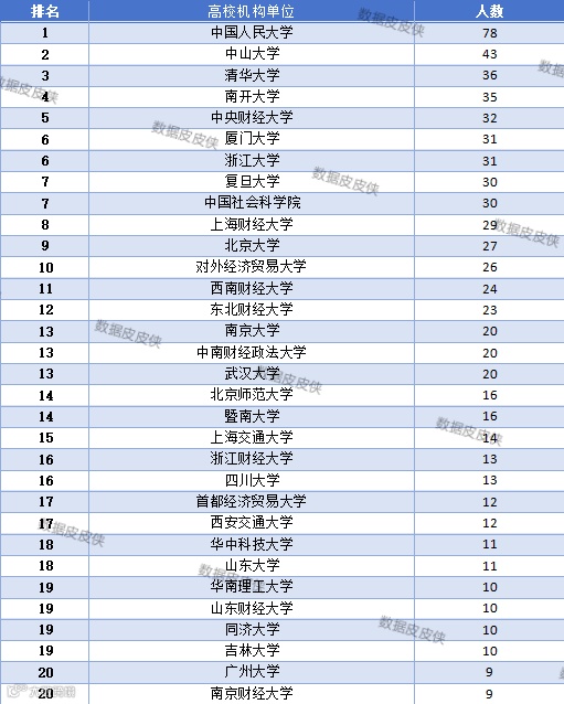 注释:排名中中国社会科学院不属于高校机构,但我们把它也列入了进来