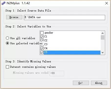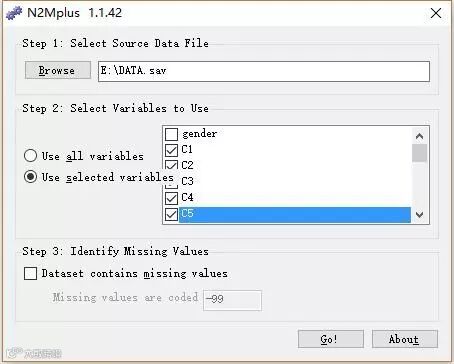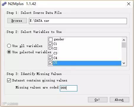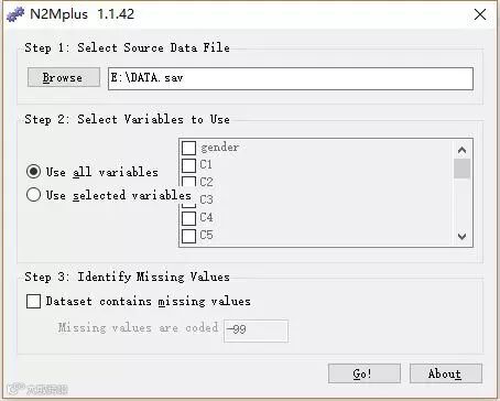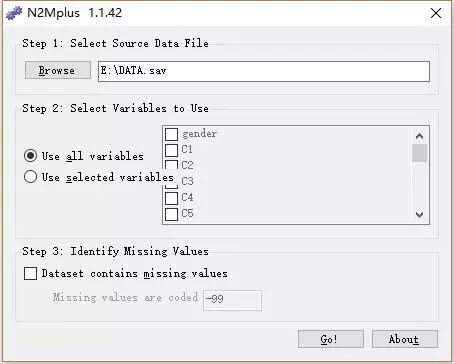 如何避免此类问题?这里给大家提供一个免费的数据转换工具N2Mplus,该程序由Daniel Soper开发,可以通过简便的操作将SPSS或EXCEL格式数据转换为Mplus分析所需的数据格式。同时,N2Mplus还可以输出Mplus所需的DATA和VARIABLE命令,这样一来,用户则可以轻松避过这个时常令人扎心的环节。下载地址:https://pan.baidu.com/s/1bzQjpScTDfaSUPw6G45fWQ