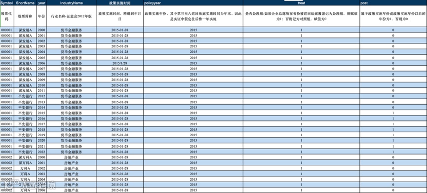 数据皮皮侠参考刘中华和黄斯琪等学者的做法,将当年企业总部所在省份被巡回法庭覆盖赋值为1,否则为0。数据提供两个版本excel版本和dta版本,还附了部分stata代码。