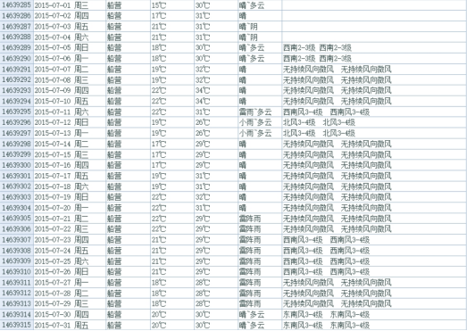 本数据来源于天气网历史天气频道(lishi.tianqi.com),提供全国34个省、市所属的2290个地区的历史天气预报查询,数据来源于城市当天的天气信息,可以查询到历史天气气温,历史风向,历史风力等历史天气状况。本数据由数据皮皮侠团队整理。