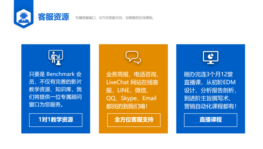 Benchmark Email(又称满客邮件)提供企业内部软硬件及网络技术等信息技术服务等业务的商事主体。Benchmark 满客邮件作为专业的群发平台,始创于美国,成立至今仍然与时俱进,为〝互联网 + 外贸〞创新形式的跨境电商企业,提供高效便捷且安全的一体化邮件营销服务。