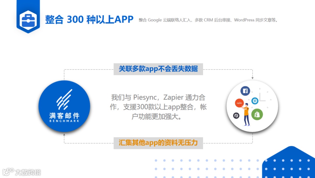 满客邮件群发软件平台支持9种不同在地语言,与超过1500个平台系统整合,致力成为客户最得力的EDM数字行销工具。