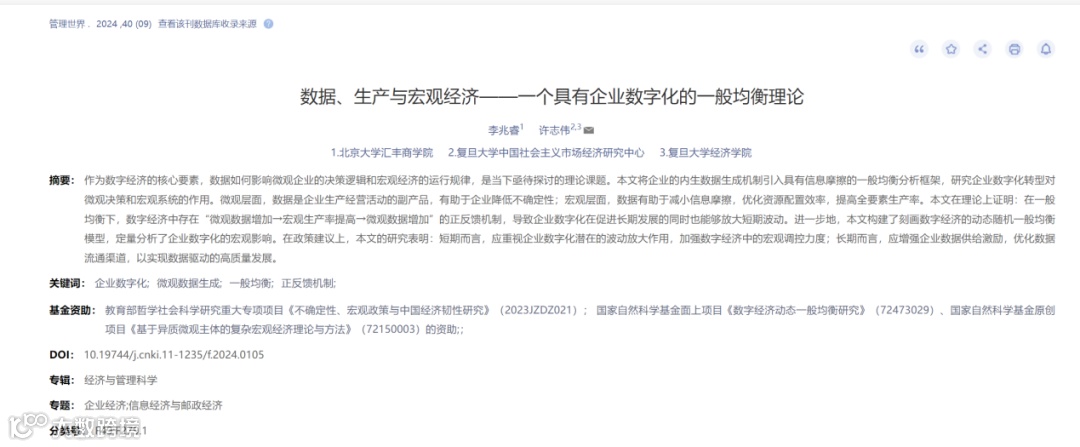 标题:数据、生产与宏观经济——一个具有企业数字化的一般均衡理论