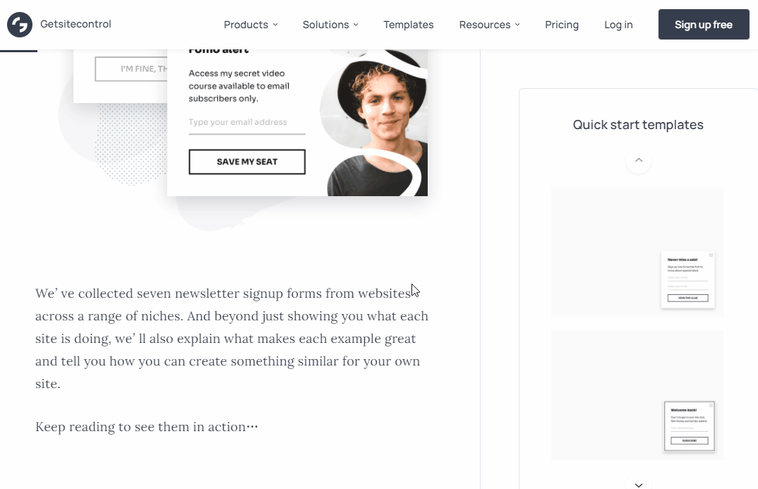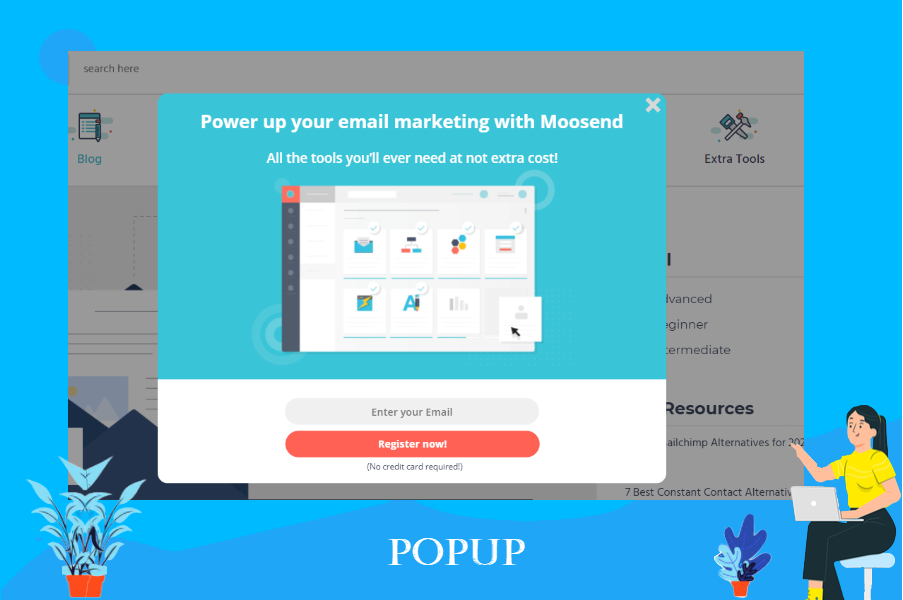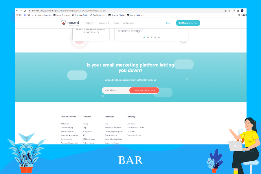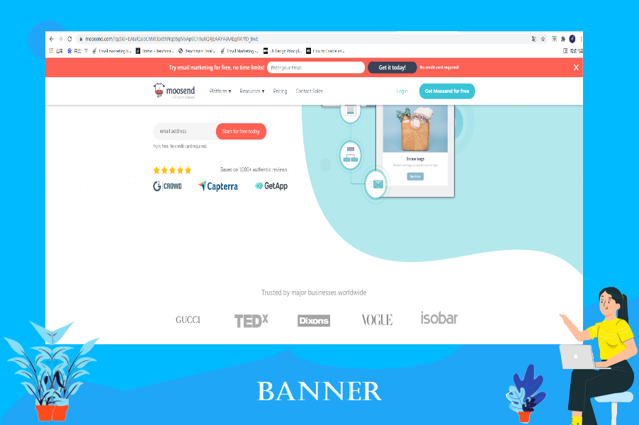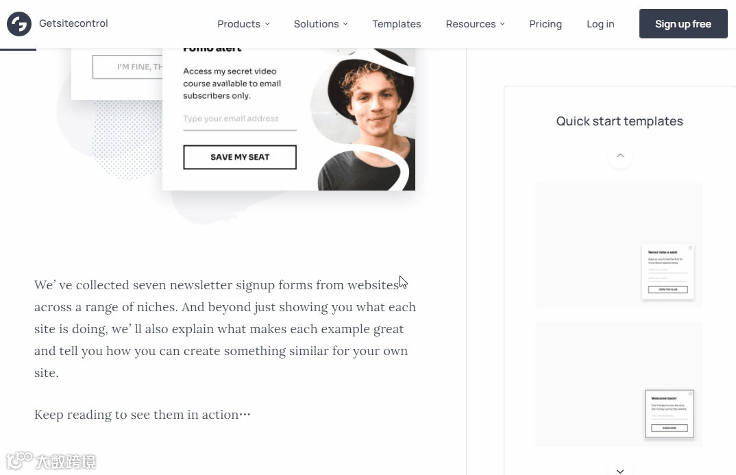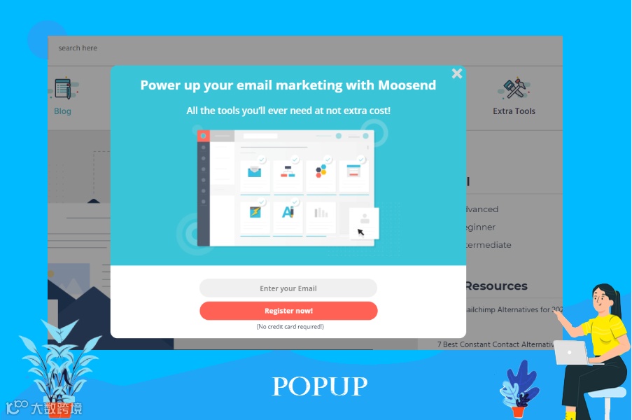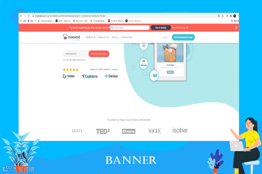 我们常见订阅表格在网页显示的方式主要有三种:Popup(弹出式),Banner(横幅式)或者 Bar(条状式)。我们以 moosend 这个网站为例介绍三种订阅表格显示方式。