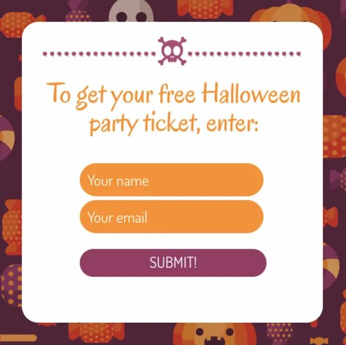 getresponse 这款满满万圣节元素的订阅表格,特定季节的节日,留下资讯,即可获取参加的万圣节派对的免费门票!