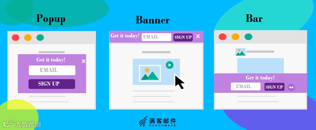 2、Banner(横幅式):订阅表格先是隐藏起来,待网页触发的时候,订阅表格就会跳出来。