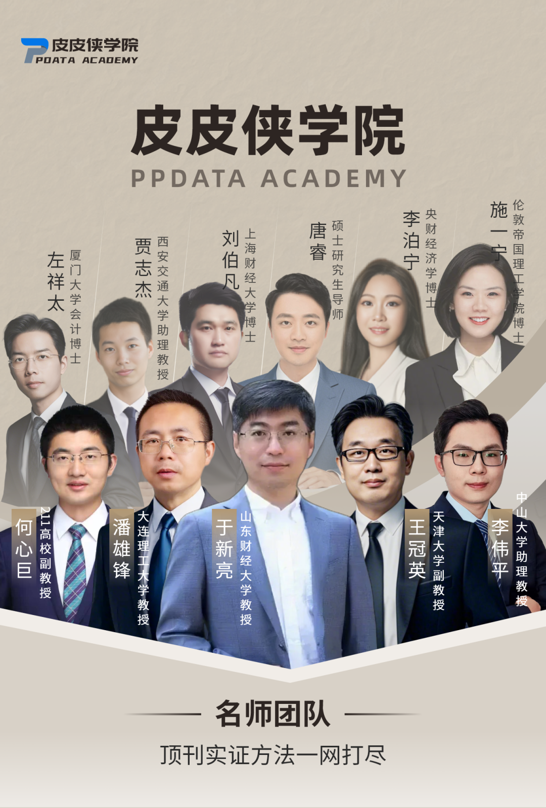 皮皮侠学院(PPdata Academy)是一个涵盖多源数据采集、数据清洗、基于非结构数据的指标构建、指标计算、模型构建、解读分析、顶刊导读,主打Stata、Python、R三种社科常用数据分析编程软件/语言的实证方法学习互联网平台。