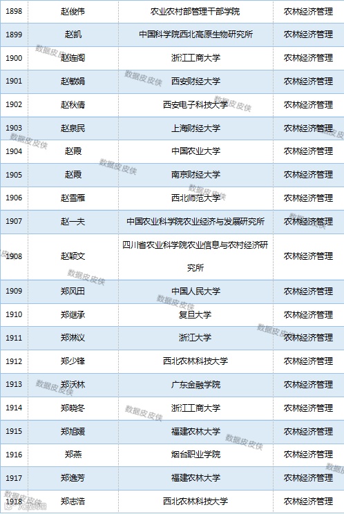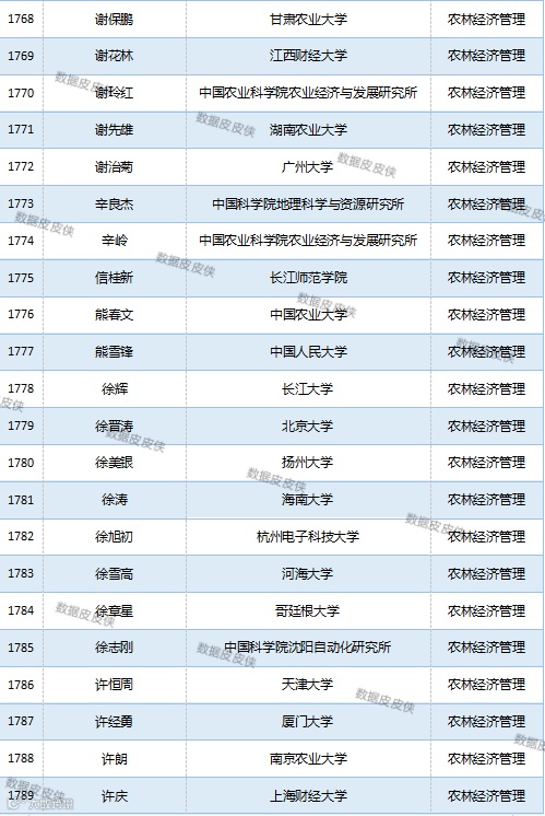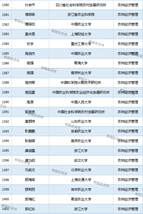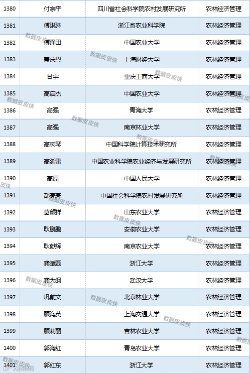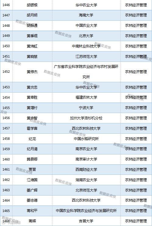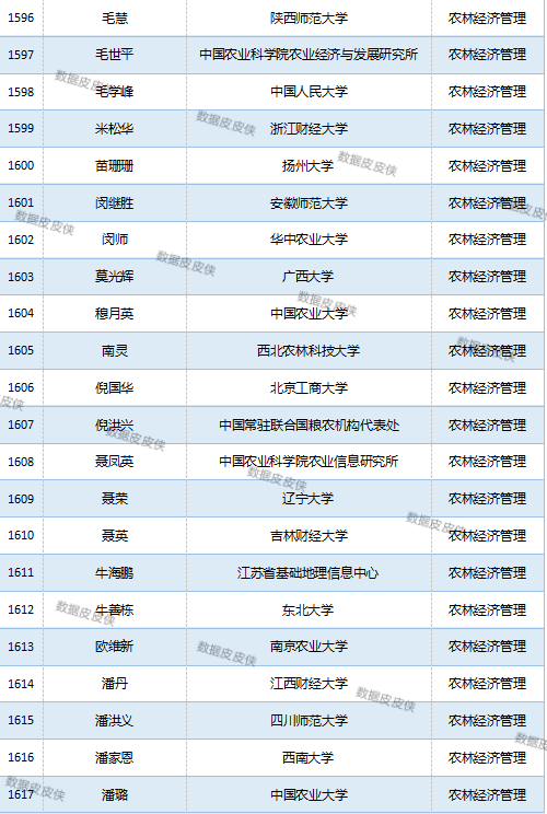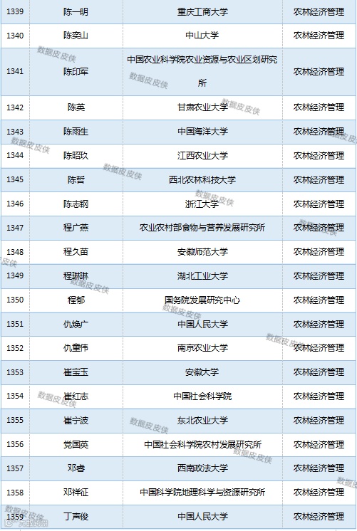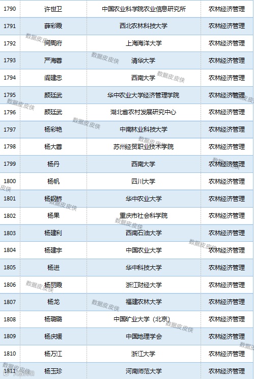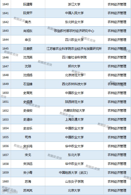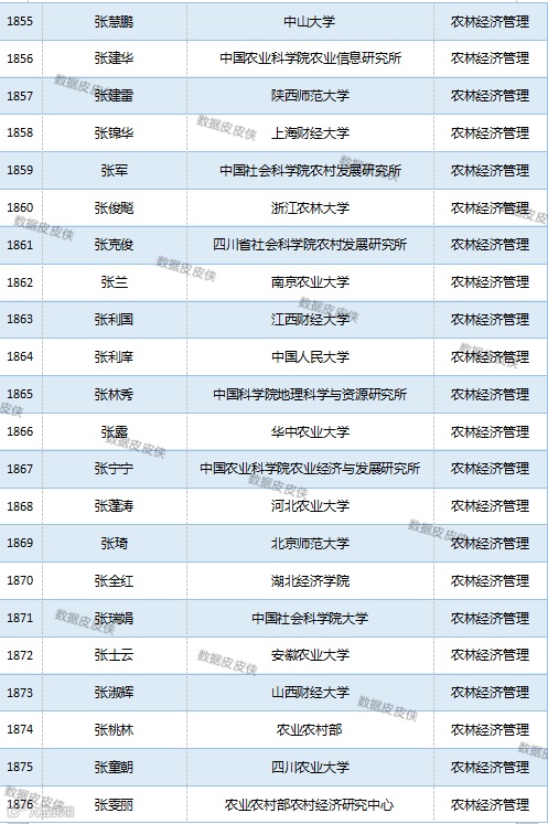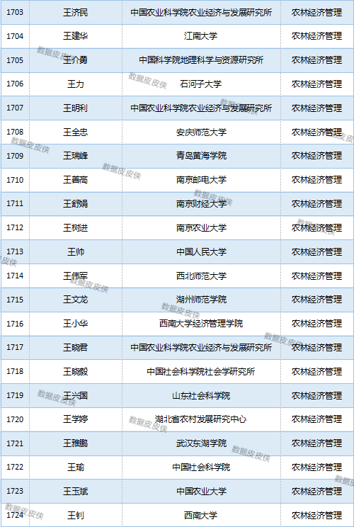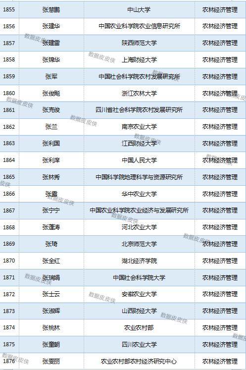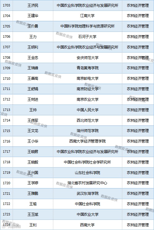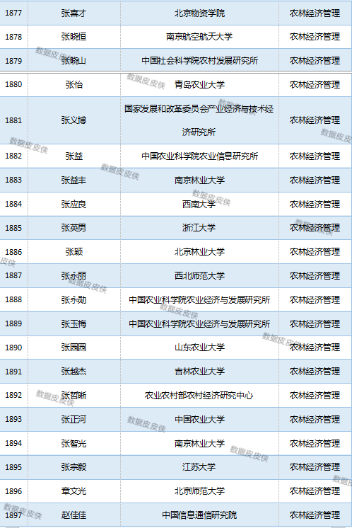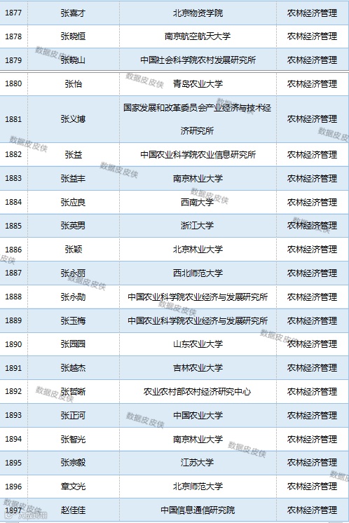 与先前经济学榜单不同的是,该榜单前20名当中财经类院校机构相对较少,多为综合性高校。引人注目的是,中国农业科学院农业经济与发展研究所作为非院校机构单位以30名学者入选数,也位列其中。