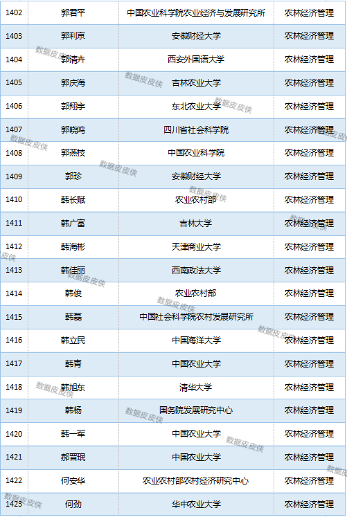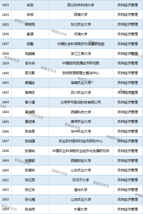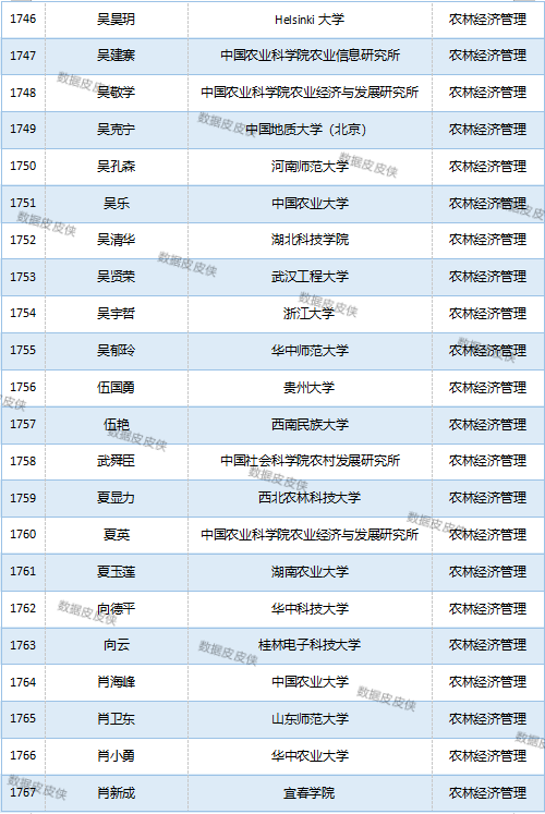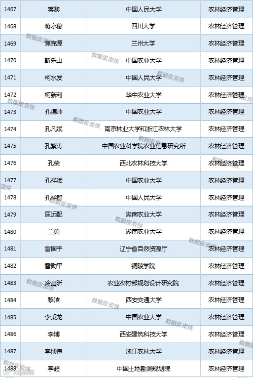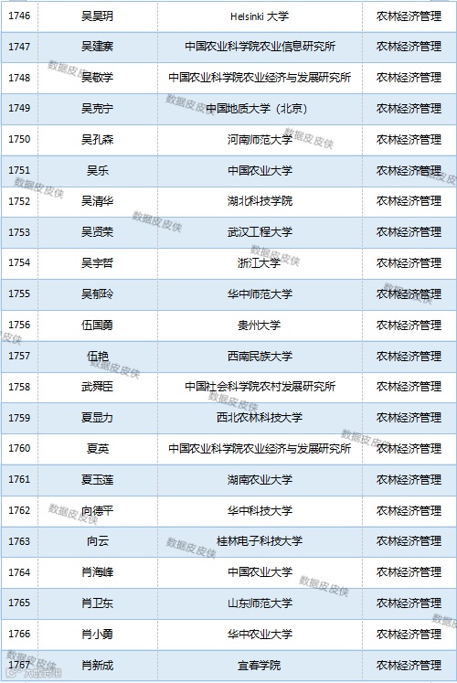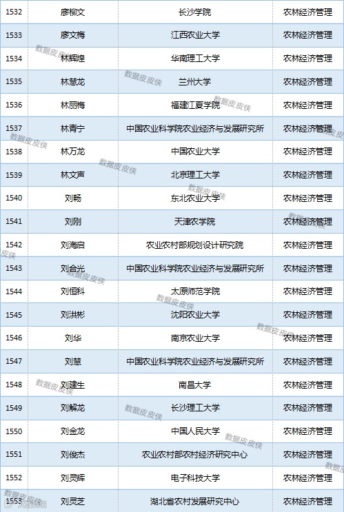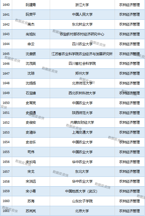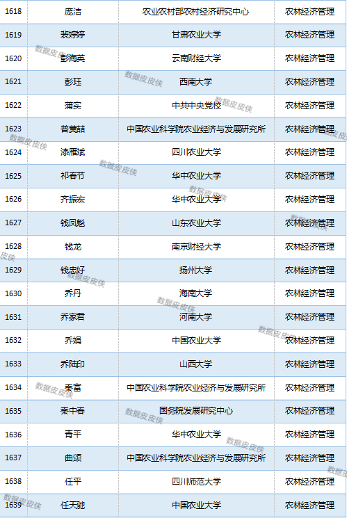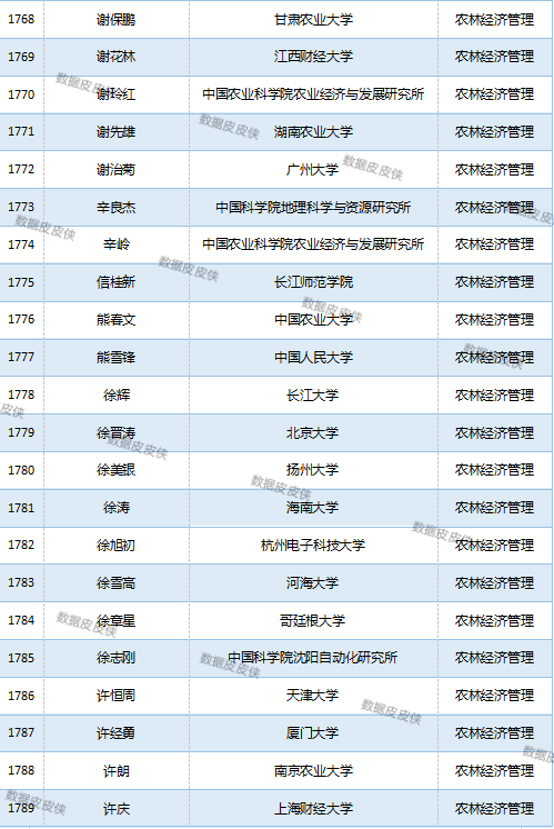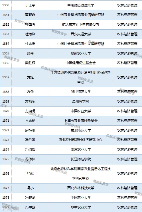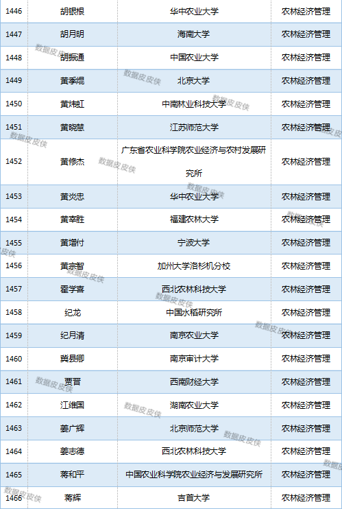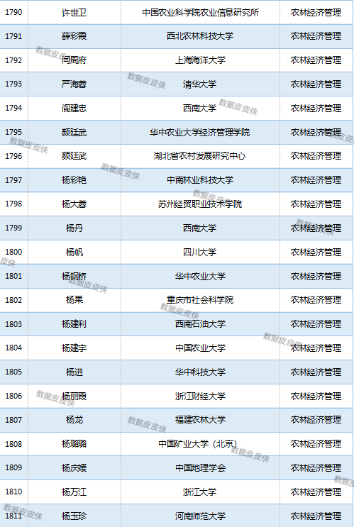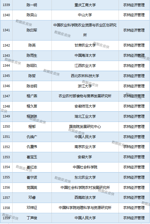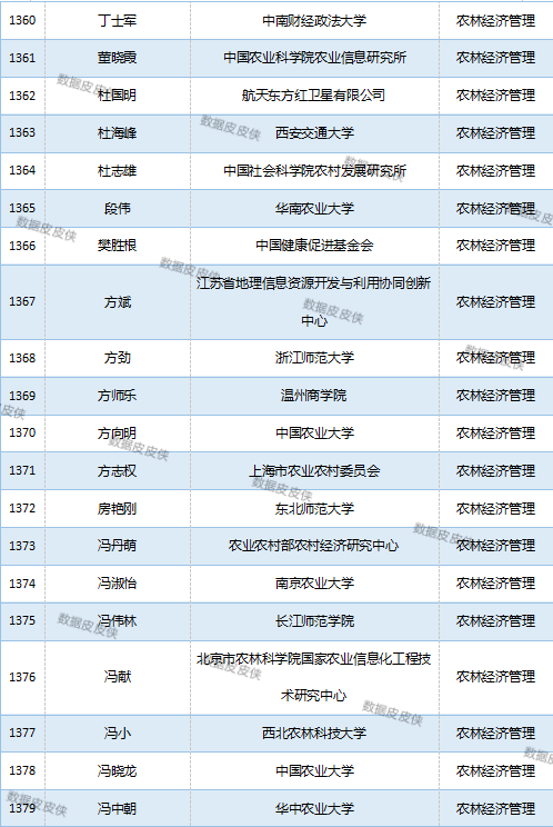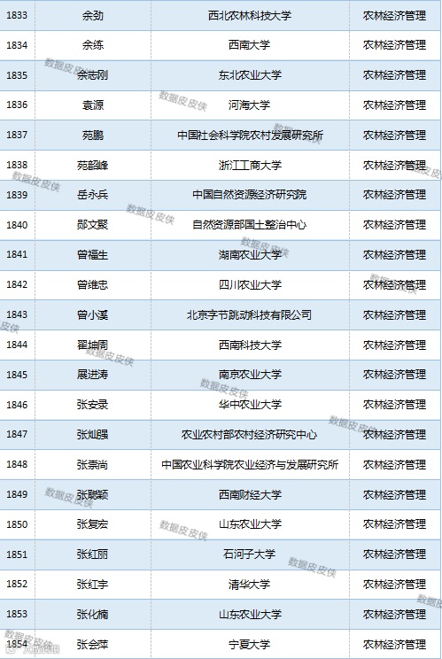 与先前经济学榜单不同的是,该榜单前20名当中财经类院校机构相对较少,多为综合性高校。引人注目的是,中国农业科学院农业经济与发展研究所作为非院校机构单位以30名学者入选数,也位列其中。