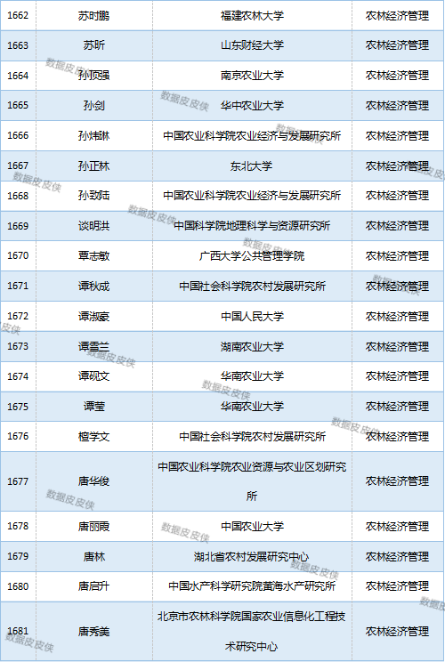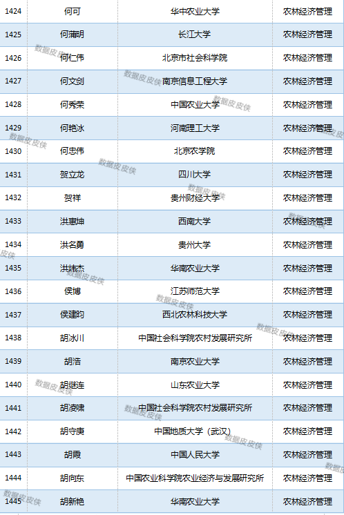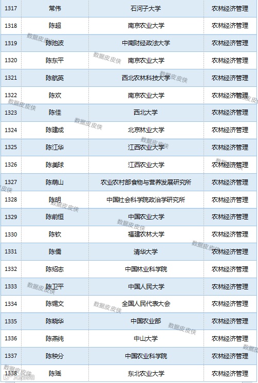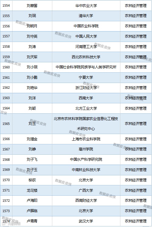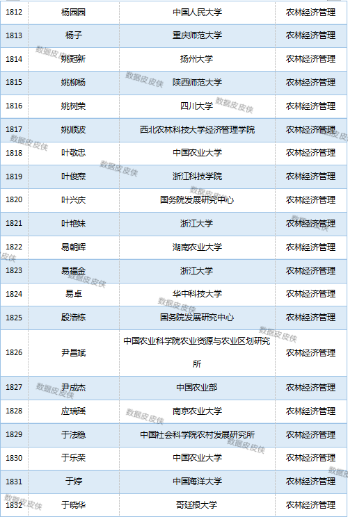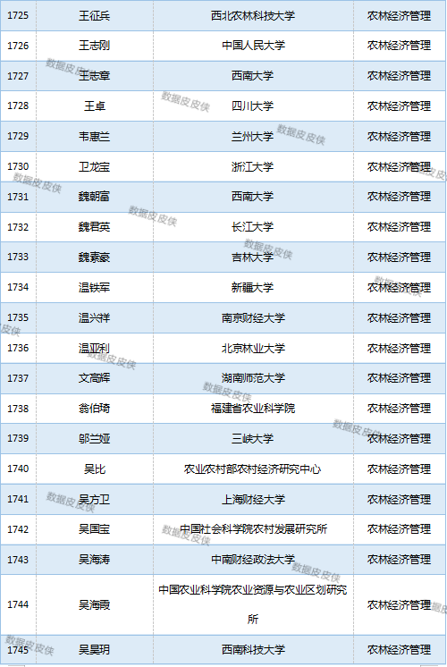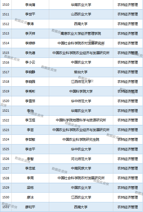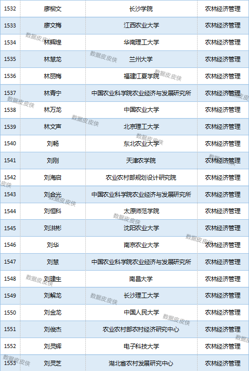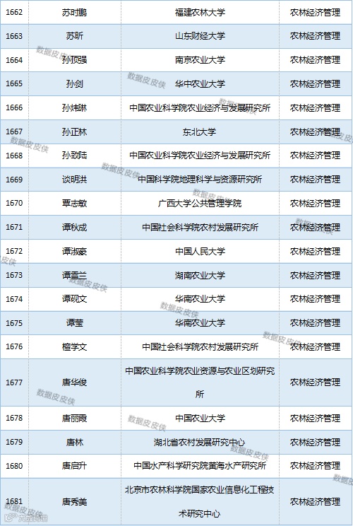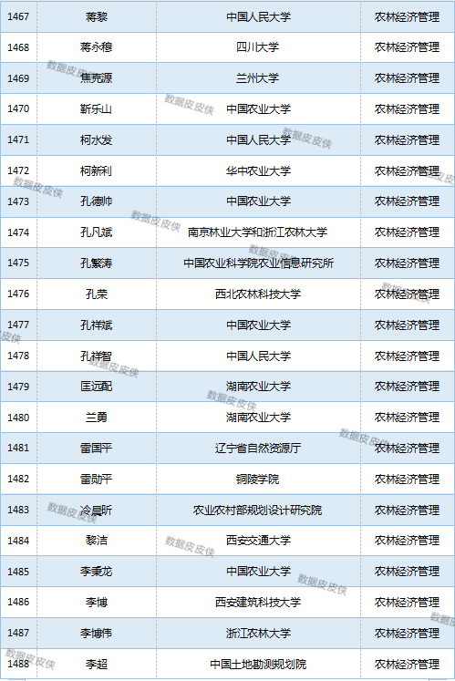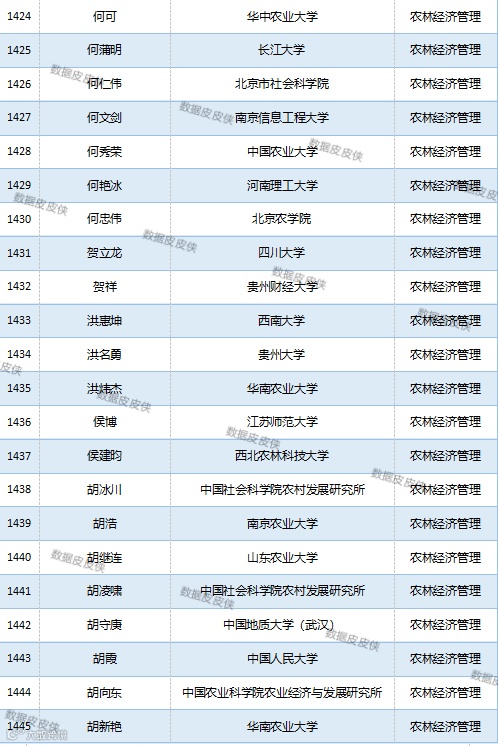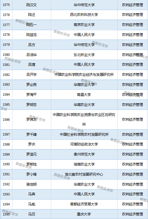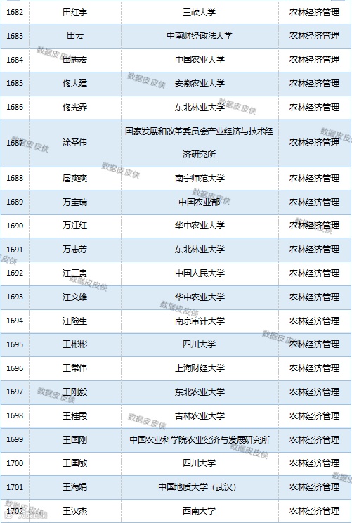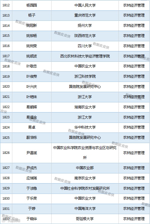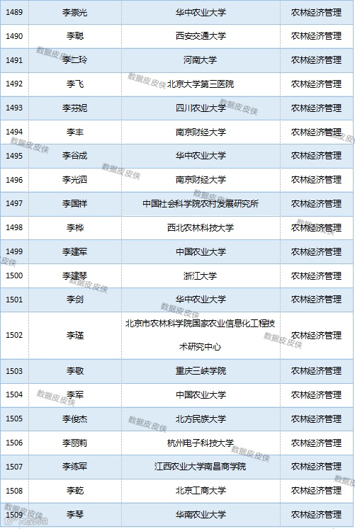 与先前经济学榜单不同的是,该榜单前20名当中财经类院校机构相对较少,多为综合性高校。引人注目的是,中国农业科学院农业经济与发展研究所作为非院校机构单位以30名学者入选数,也位列其中。