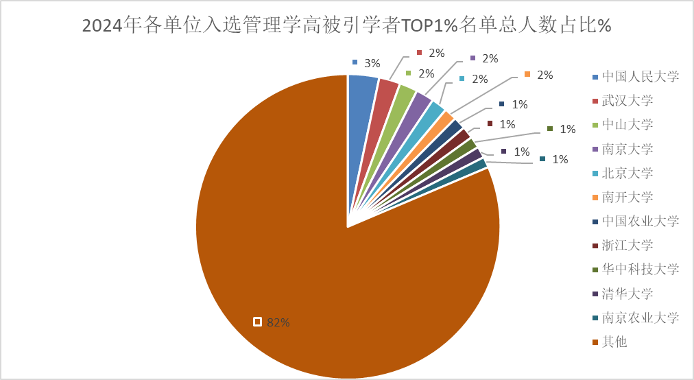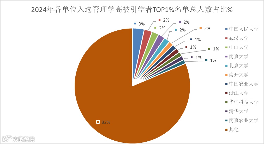 可以看出,入选2024年管理学高被引学者TOP1%名单中绝大多数学者所属管理学科几乎呈现四分天下之局势。