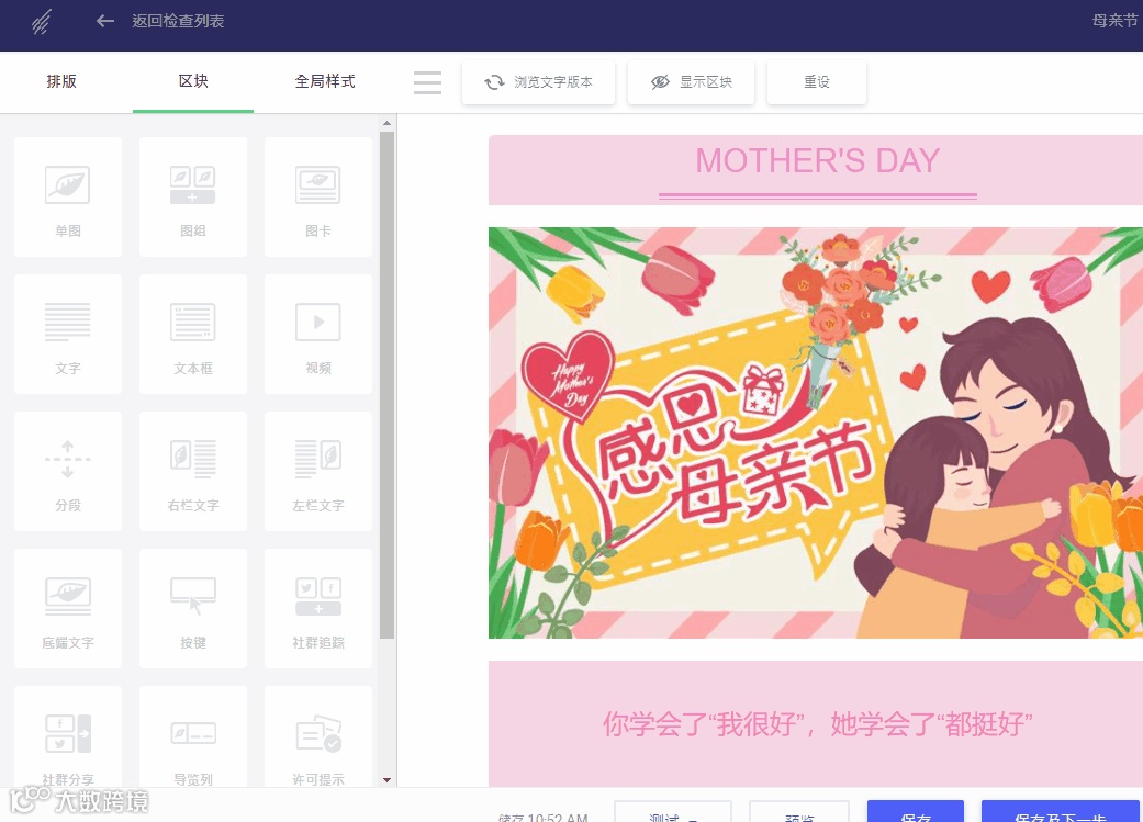▲ 编辑完成后可以选择发送预览邮件,看看最终展现出的母亲节贺卡 效果哦!