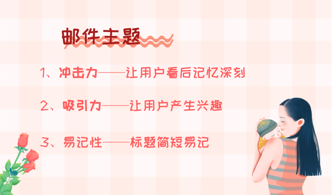 ● 邮件标题要有冲击力、吸引力、易记性,内容要符合主题,整体风格观感要一致。