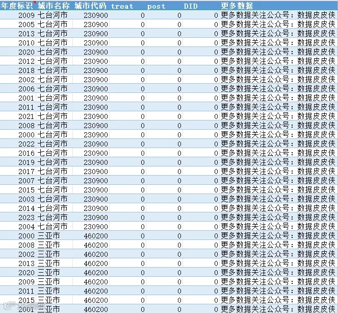 参考李言和毛丰付(2022)的做法,将实验组设定为文明城市,实验组城市设定为1,非实验组城市设定为0。2005年首次评选张家港市、厦门市、青岛市等9市入选文明全国文明城市,2009年的第二次评选新增成都市、南京市、南宁市等9市,2011年第三次评选新增长沙市、广州市、福州市等23市,2015年第四次评选新增了武汉市、南昌市、哈尔滨市等28市,将评选进入全国文明城市之后的年份的虚拟变量设定为1。