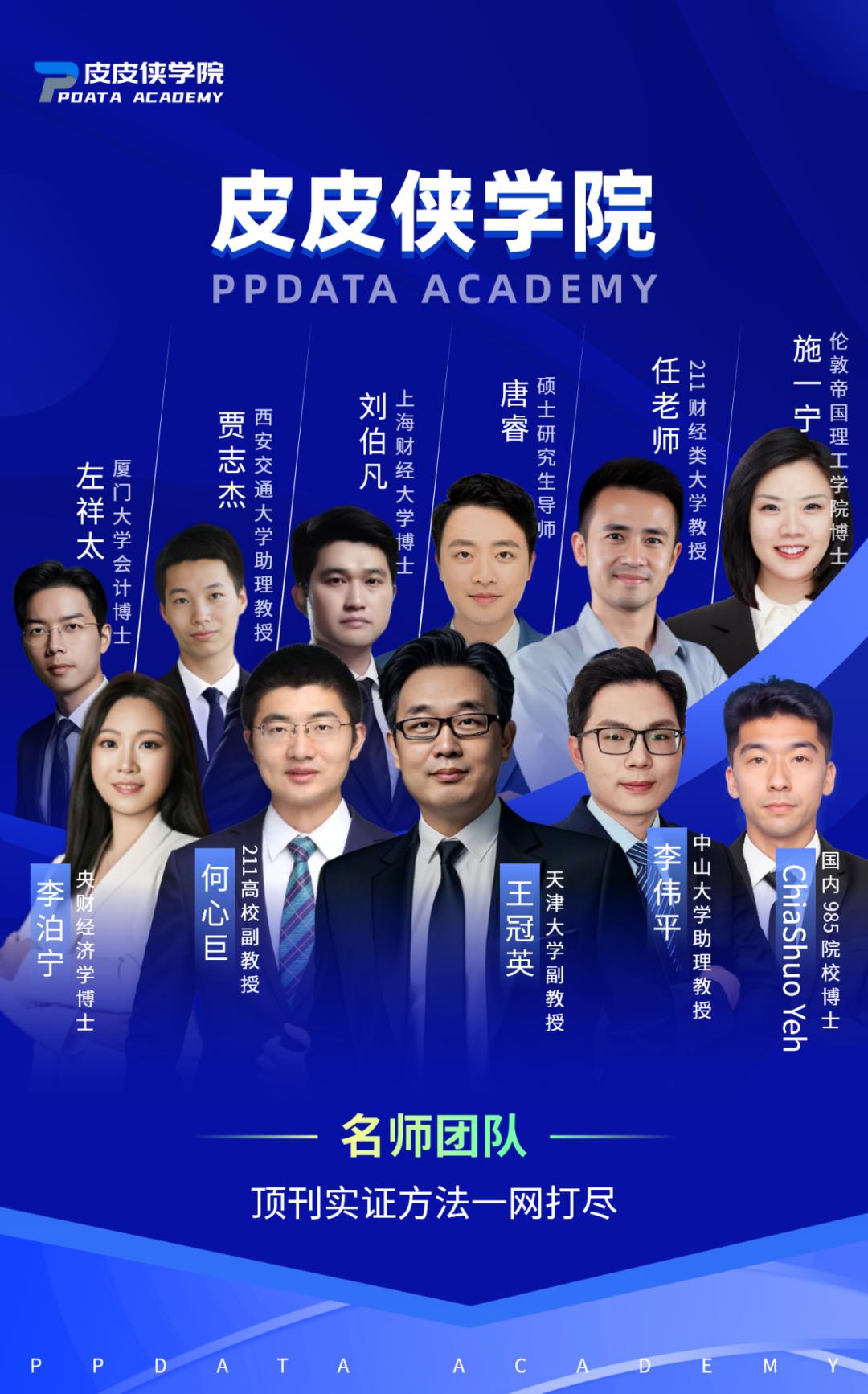 皮皮侠学院(PPdata Academy)是一个涵盖多源数据采集、数据清洗、基于非结构数据的指标构建、指标计算、模型构建、解读分析、顶刊导读,主打Stata、Python、R三种社科常用数据分析编程软件/语言的实证方法学习互联网平台。