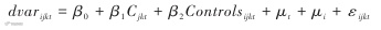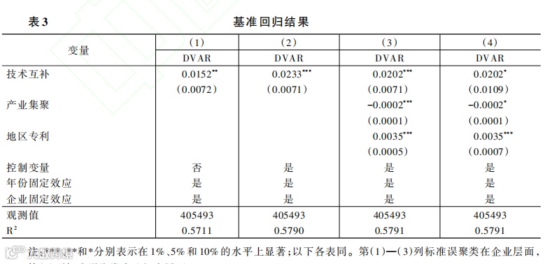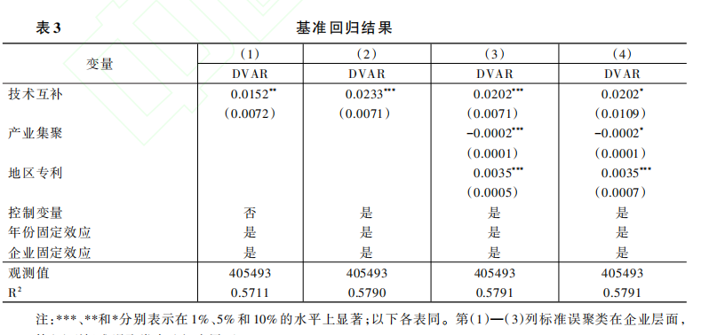 本文的实证分析采用了以下回归模型来检验地区间技术互补对企业出口国内附加值率(DVAR)的影响: