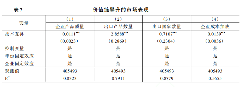 本文通过实证分析验证了地区间技术互补对企业全球价值链攀升的影响机制,主要包括以下两个方面: