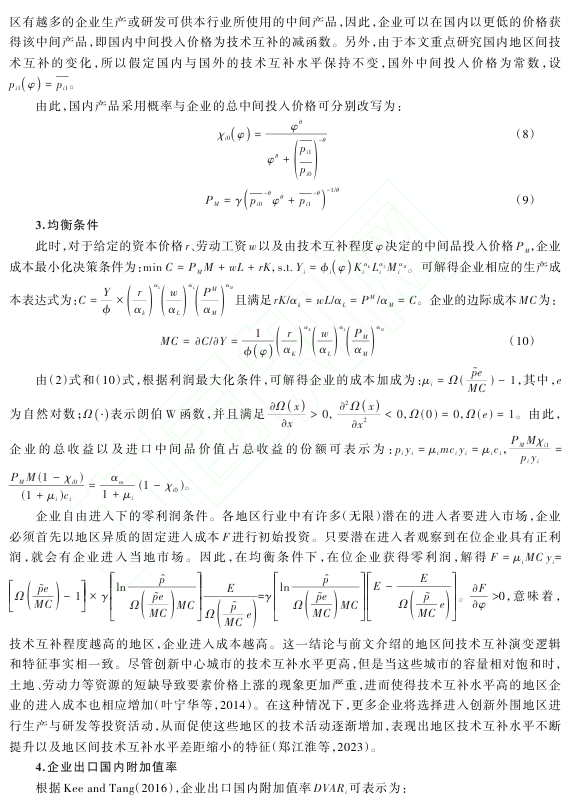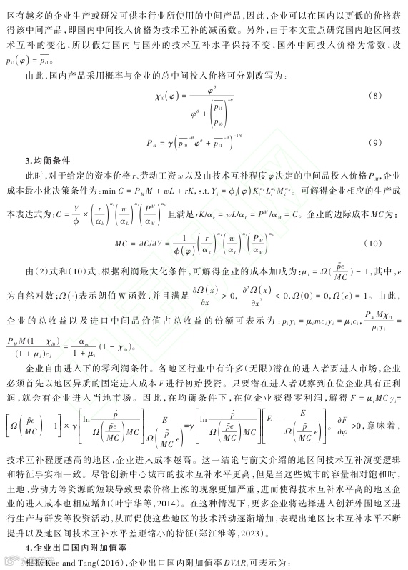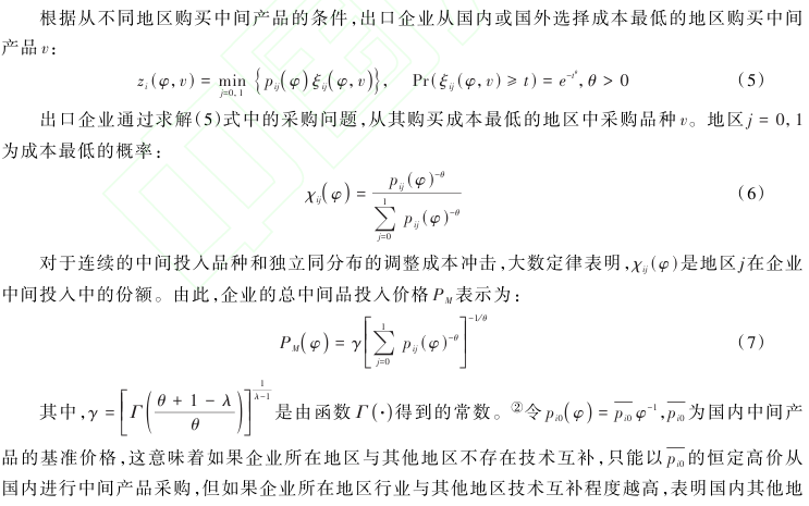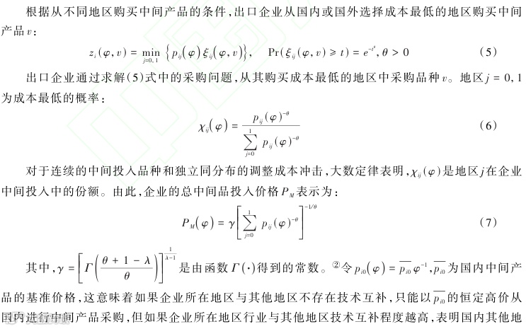 本文构建了一个出口企业的中间产品采购理论模型,以探讨地区间技术互补对企业出口国内附加值率的影响及其作用机制。模型设定如下: