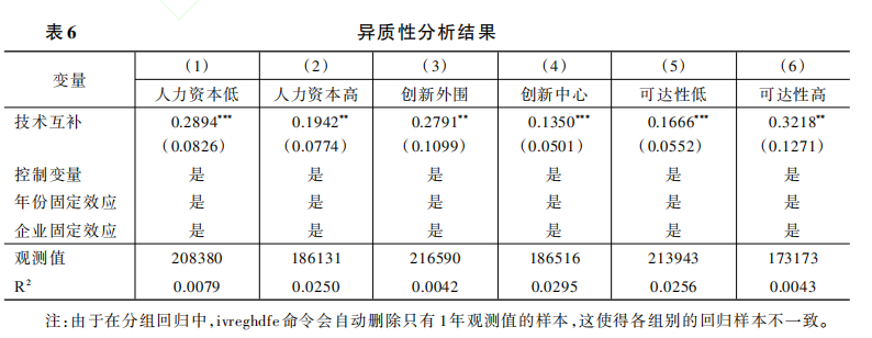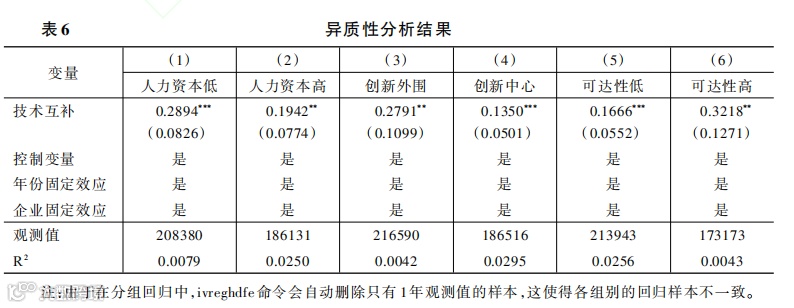 技术互补对人力资本水平较低的企业以及处于创新外围地区的企业促进作用更强,有助于缩小中心与外围地区以及人力资本前沿企业与落后企业之间的差距。