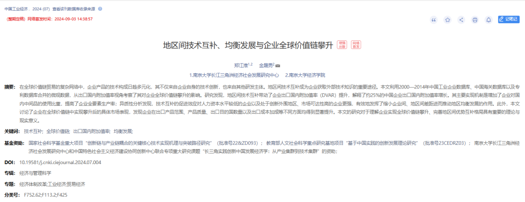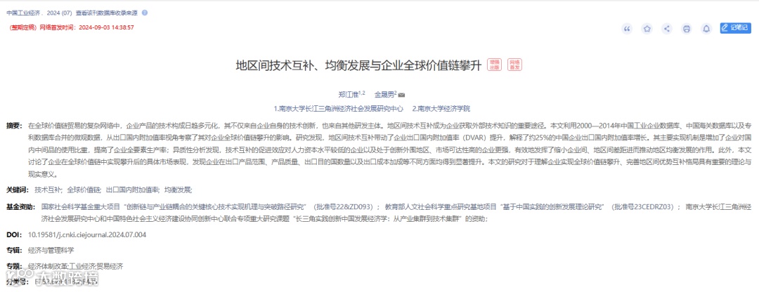 [1]郑江淮,金晟男.地区间技术互补、均衡发展与企业全球价值链攀升[J/OL].中国工业经济,2024,(07):85-104[2024-09-19]