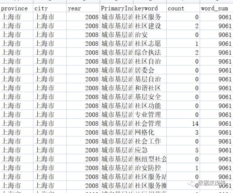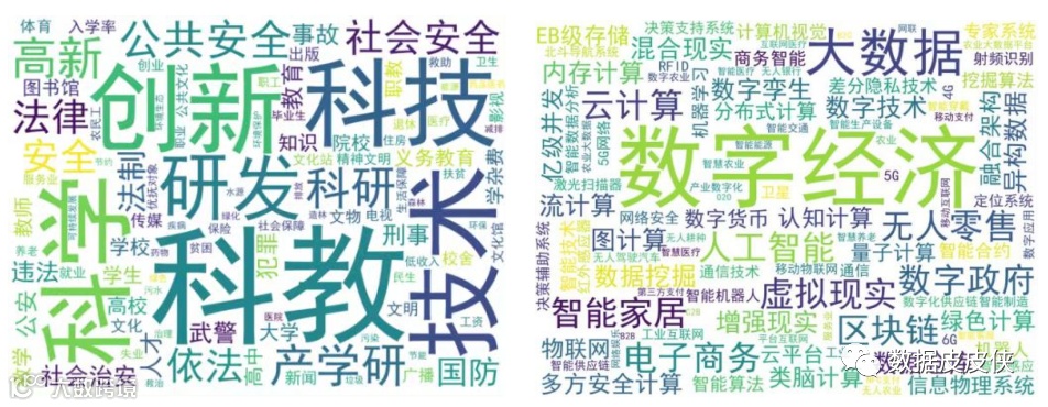 此前皮皮侠团队从政府工作报告文本数据中挖掘过数字经济、碳中和、绿色环保、基本公共服务、城市综合治理、科技创新与人才等词频,得到了600+个关键词,这些关键词可用于相关学术研究中。比如碳中和、绿色环保等相关词频可用于分析研究地级市政府绿色环保发展注意力,进而辅助政府制定严格的环保政策;基本公共服务相关词频可将政府发展注意力这一指标可视化;科技创新与人才等相关词频可以对科研人才的流动、分布、薪酬、创新进行研究。