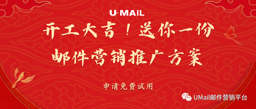又到一年开工时,经过春节小长假的休憩,我们引来了兔年的第一个工作日,大家有没有从“放假模式”切换到“工作模式”?如果还没进入状态,U-Mail邮件营销平台送你一份邮件营销推广方案,刚好,2月份有很多营销热点,提前筹谋、有的放矢,打好兔年营销第一战。