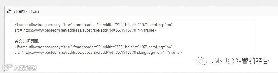 U-Mail邮件营销平台提供邮件订阅控件,将代码复制到合适的位置就可以轻松在网站或博客上安装邮件订阅控件,这一功能不仅有助于我们保持与客户的紧密联系,而且能够确保我们的邮件列表不断增长,订阅客户的邮箱地址会直接传到U-Mail后台订阅列表中,方便后续邮件营销操作。