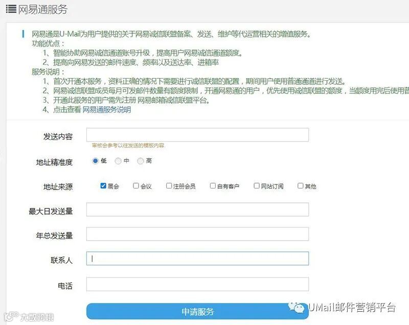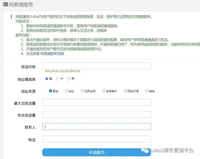目前,U-Mail邮件营销平台只针对部分优质客户开放白名单服务,并且白名单服务的申请也有一些限制: