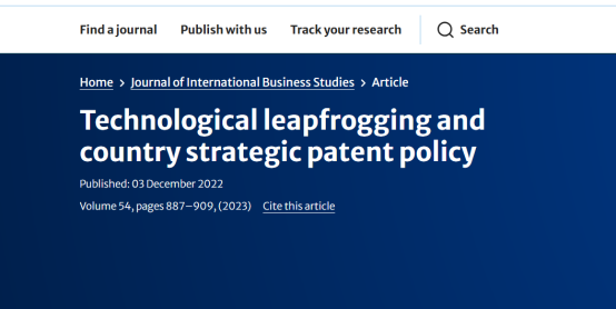清华大学技术创新研究中心主任陈劲教授、主任助理于飞博士、西澳大利亚大学吴延瑞教授、杜克大学Arie Lewin教授合作完成的《技术赶超与国家战略性专利政策》(Technological leapfrogging and country strategic patent policy)一文,在Journal of International Business Studies(JIBS)获得发表。该文综合运用了博弈论建模、Matlab数值模拟求解、基于全球专利库的大数据回归分析等研究方法,揭示了战略性专利政策促进技术赶超的内在机理,对国家科技创新具有实践指导价值。