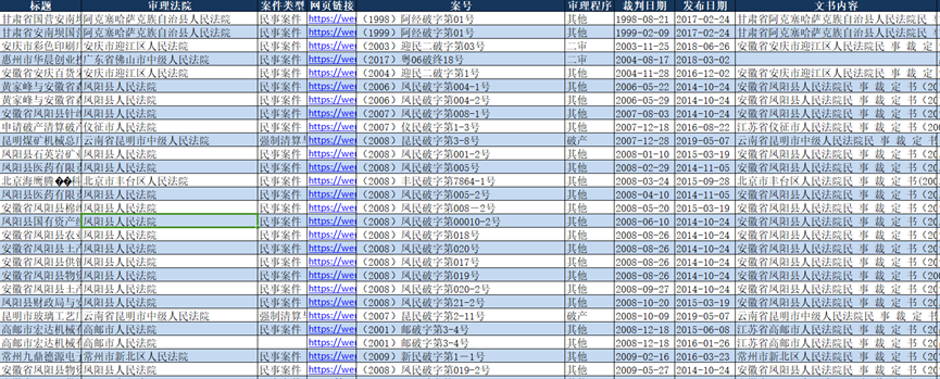 参考《经济学(季刊)》胡佳胤等老师的做法,数据来自最高人民法院的裁判文书网 (https: //wenshu.court.gov.cn/),使用关键词检索的方式,通过业界广泛使用的Alpha法律智能操作系统和威科先行法律数据库,下载了裁判文书网中的全部破产类裁判文书。根据最高人民法院对破产法险律文书样式的规定,将案号中的裁判类型字段为“破”“破申”“破初”“破预”字样的案件定义为破产案件,并通过案号将同一案件的多份裁判文书归并处理,得到企业破产申请案件数据。本数据由数据皮皮侠团队整理。