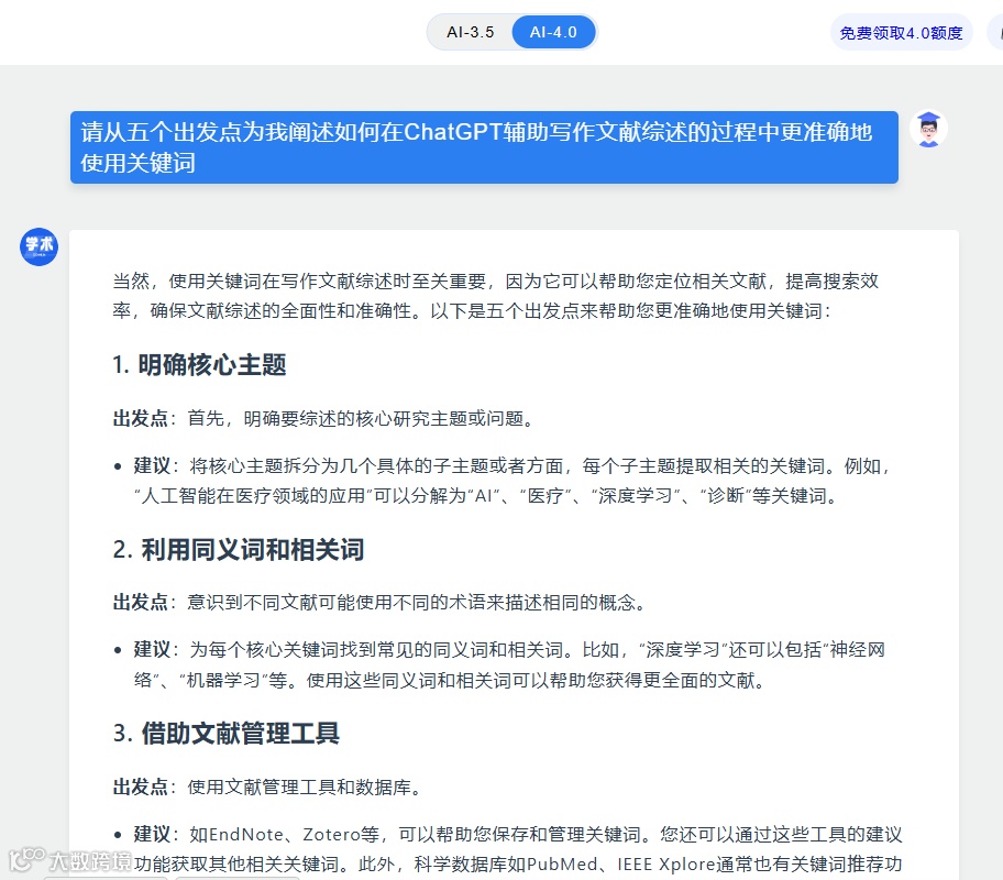在利用ChatGPT进行文献综述的过程中,关键在于构建恰当的提示词,以此引导AI生成相关且有益的内容。在文献综述的初始阶段,提示词应旨在获取对研究主题的广泛认识。