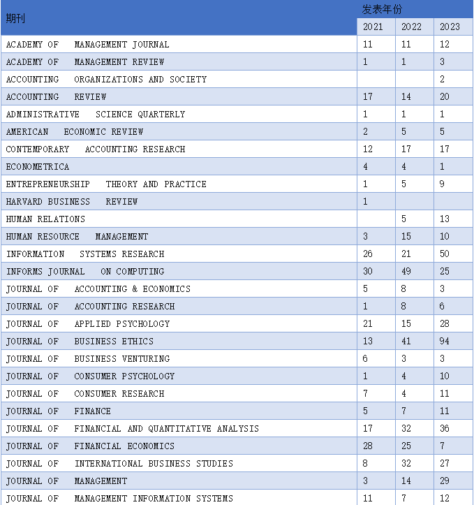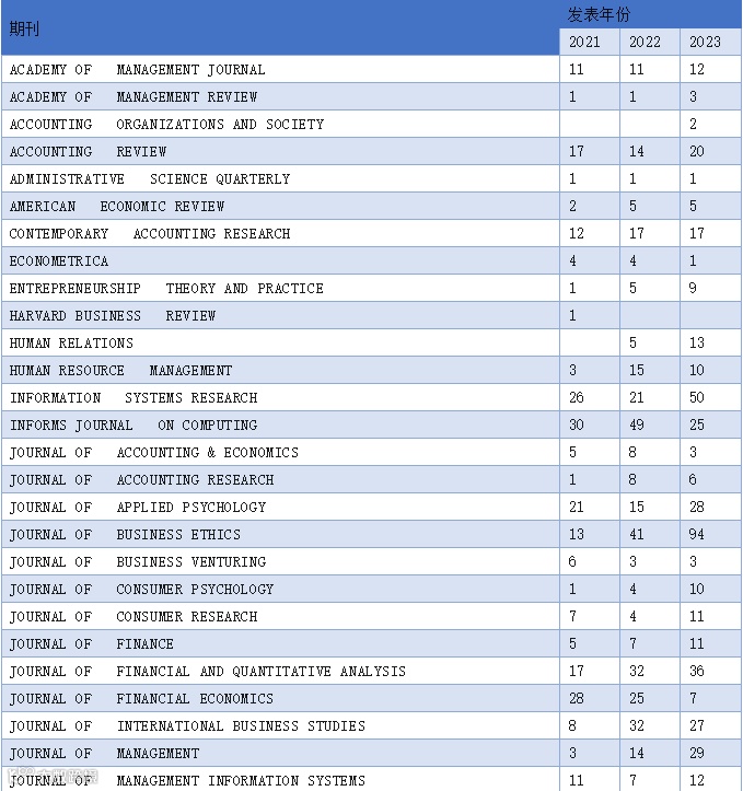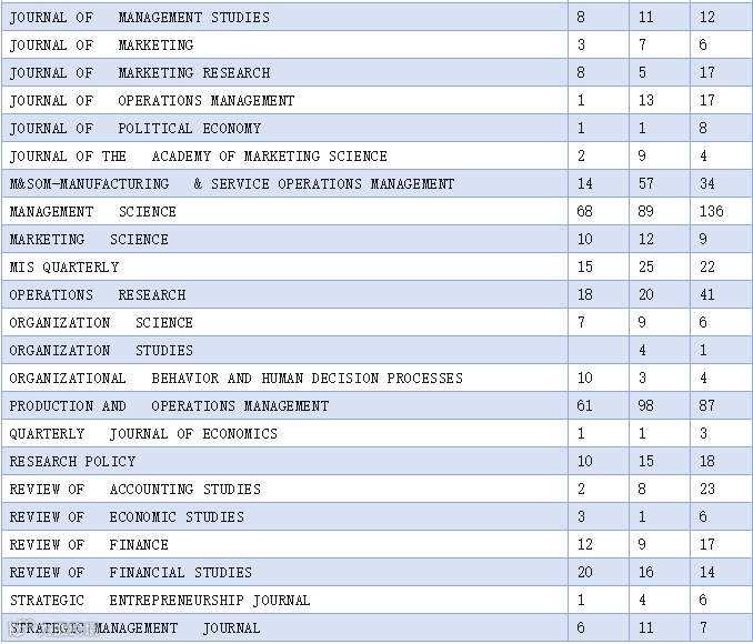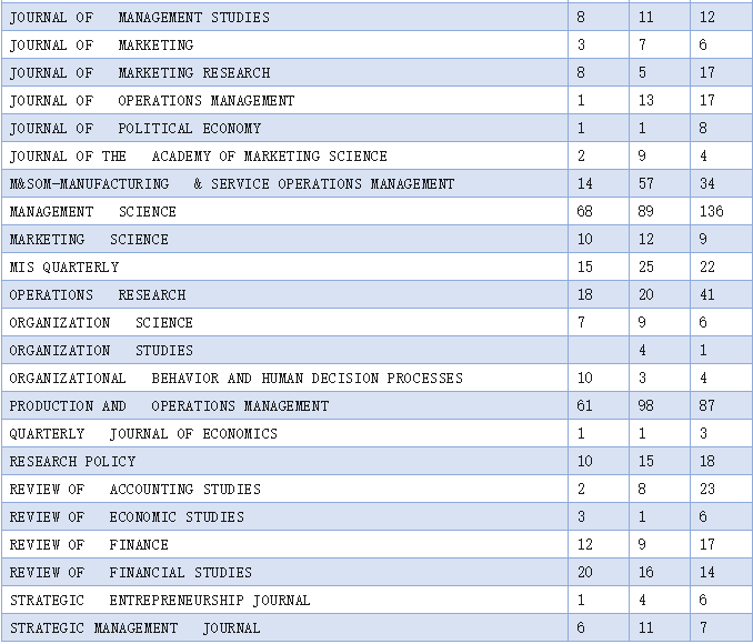 UTD24期刊的全称为The University of Texas at Dallas 24期刊,是美国德克萨斯大学达拉斯分校选出的最顶尖的24种商学学术期刊,涵盖管理科学、会计学、金融、市场营销、战略管理等领域。UTD24用于国际商学院研究能力评估,是商学院排名的重要参考依据,在国际上认可度极高。同时,该目录也是国家自然科学基金委员会管理科学部、教育部管理学科等领域重要人才计划项目评选的重要参考条件。