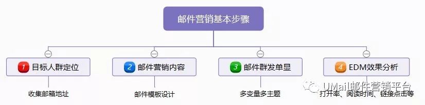 之前的文章讲了婚纱摄影的推广方法,每个方法都各有千秋,行业内拓客都是多种方式一起使用的。邮件营销作为ROI回报率最高的方式之一,很多营销人员对其推广方式还比较陌生,一次基本的邮件营销活动主要分为四个步骤: