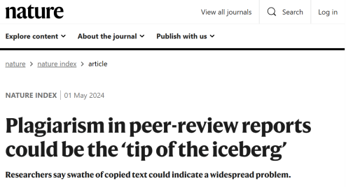 2024年5月1日,Nature杂志发表了一项研究,揭露了一个令人不安的事实:不负责任、抄袭成风的同行评审意见已变得随处可见。
