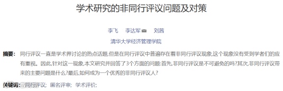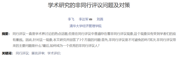李飞, 李达军, 刘茜.《学术研究的非同行评议问题及对策》[J]. 科研管理,2019,40(11):285-288.