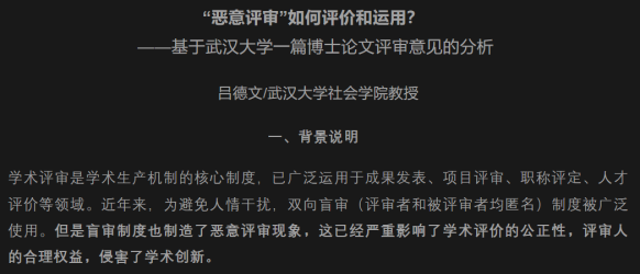 武汉大学吕教授掷地有声的控诉自己的博士弟子遭遇恶意评审。