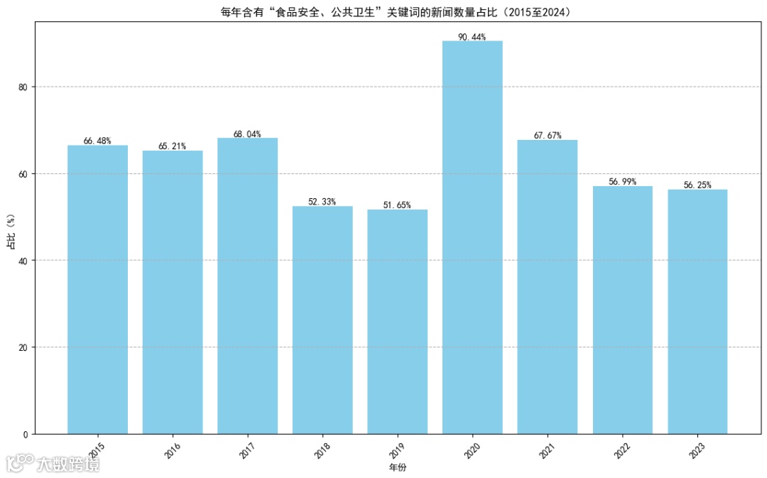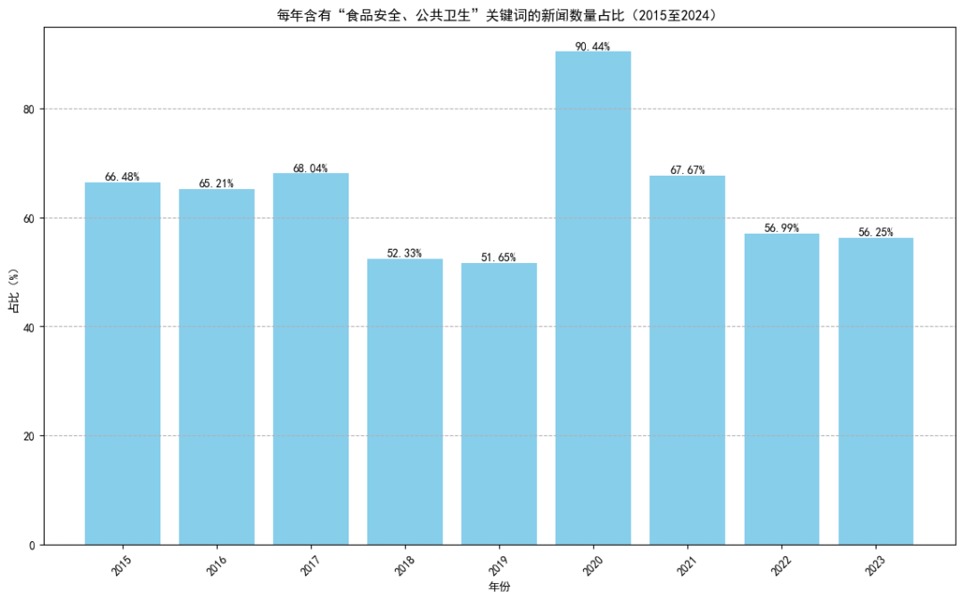 # 绘制每年含有关键词的新闻数量占比的条形图