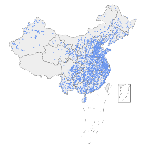 全球范围,可根据经纬度筛选出中国领域,覆盖全国省、市、县。